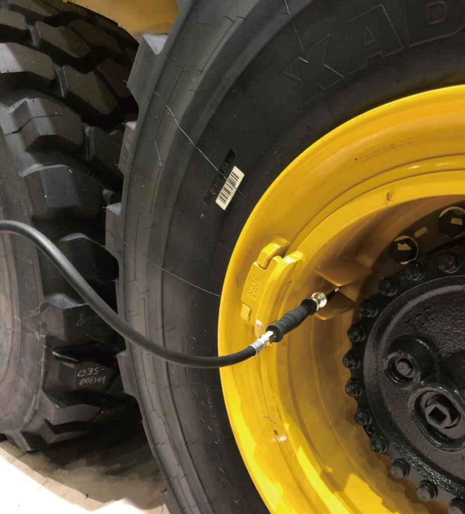 タイヤバルブ12V1(外径12mmジャンボバルブ)付きOR(Off the Road)タイヤ専用チャック。押込むと両爪でがっちりロックする手放しソケットタイプ。外す時はノブを引くだけの簡単着脱。産業車両用タイヤの作業に最適。※2面取りバルブには使用することができません。
